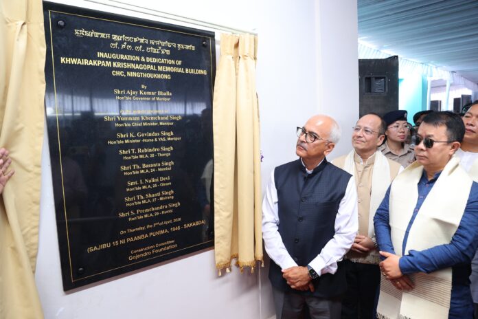 Imphal: Governor of Manipur, Ajay Kumar Bhalla, today graced the inauguration of the Khwairakpam Krishnagopal Memorial Building at Ningthoukhong in Bishnupur district. The building was also formally dedicated to the Community Health Centre (CHC), Ningthoukhong, on the occasion. Constructed by the Gojendro Foundation within the premises of the CHC, the facility has been handed over to the Government of Manipur to support the expansion and upgradation of the centre, with a particular focus on strengthening maternal healthcare through the establishment of a dedicated maternity ward.