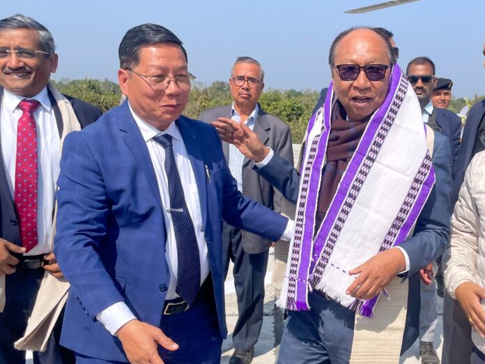 Yumnam Khemchand left for Jiribam from Kangla Helipad at 10 a.m. On his arrival at Bidyanagar Helipad, he was warmly received by the District Administration, led by Deputy Commissioner, Jiribam Krishna Kumar along with Superintendent of Police Prakhar Pandey, ADC, Jiribam Th. Manoranjan Singh and other officials from the District Administration, District Police and Central Security Forces.