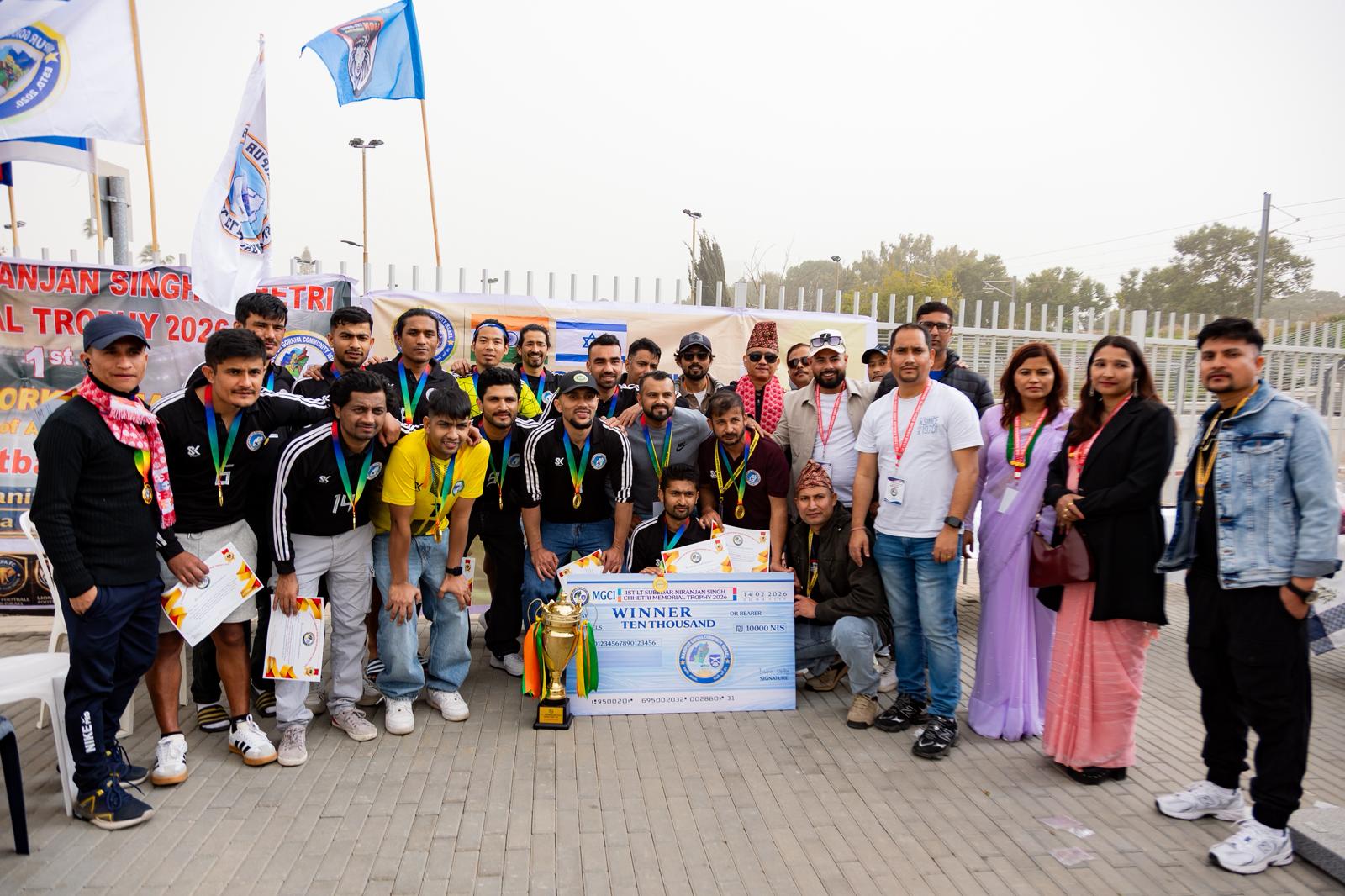 The tournament was graced by Bipin Tamang Ji, social worker in Israel, as the Chief Guest, who was accompanied by MGCI President Deepesh Chhetry. Nine teams from India and Nepal, currently working in Israel, participated. Manipur Gorkha FC and United Darjeeling FC reached the final, where Manipur Gorkha FC emerged victorious with a 1–0 win. The final goal was scored by Ajoy Basnet, who was also named Man of the Match.