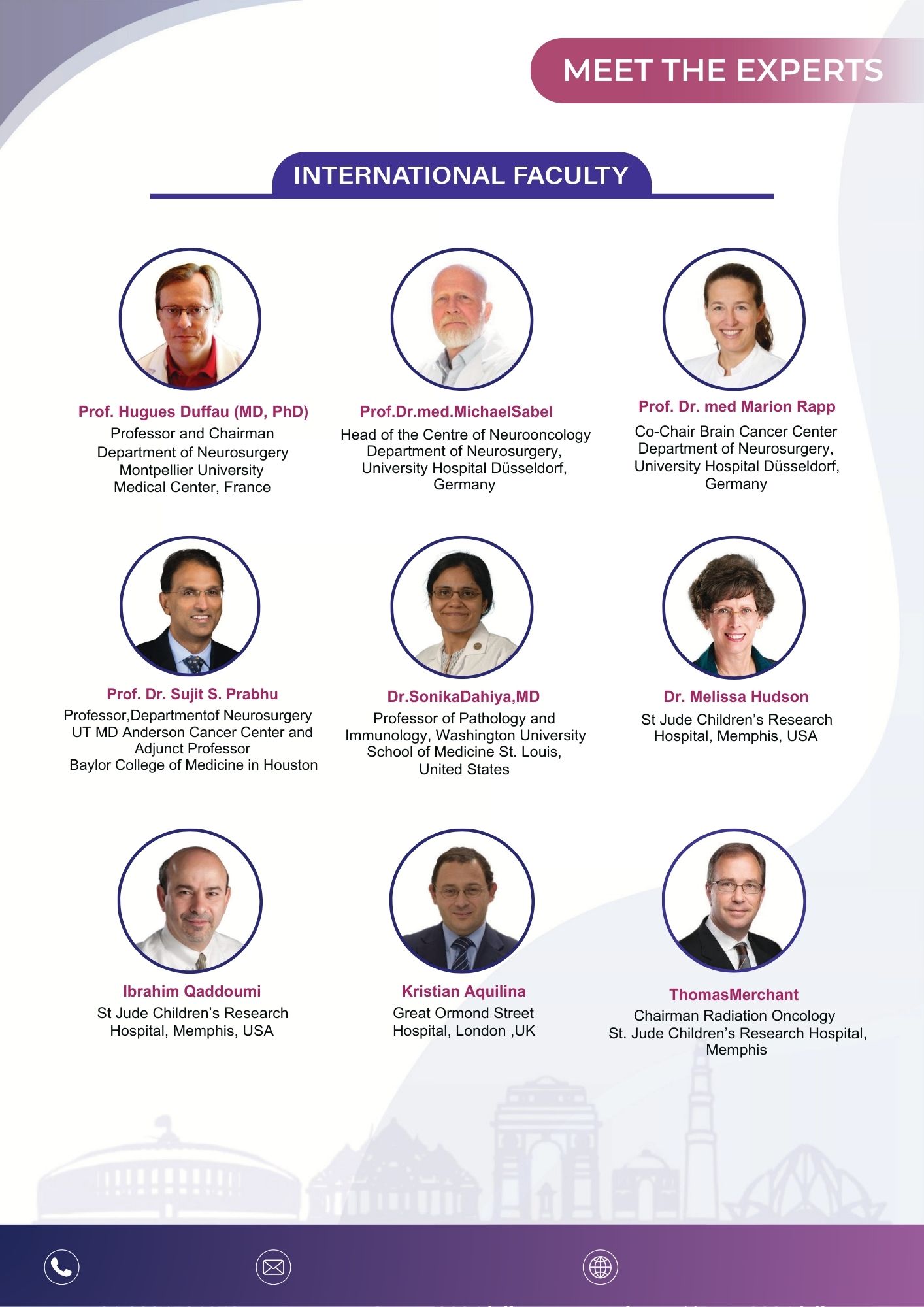 University Hospital Düsseldorf, Germany, and Prof. Dr. med. Marion Rapp, Co-Chair Brain Cancer Center, Department of Neurosurgery, University Hospital Düsseldorf, Germany. Also present were Prof. Dr. Sujit S. Prabhu representing UT MD Anderson Cancer Center and Baylor College of Medicine, USA, as well as Dr. Sonika Dahiya from Washington University School of Medicine, St. Louis. The delegation from St. Jude Children’s Research Hospital, USA, included Dr. Melissa Hudson, Ibrahim Qaddoumi, and Thomas Merchant. Additional experts were Kristian Aquilina of Great Ormond Street Hospital, UK, Dr. Swati Jain from the National University Health System, Singapore, and Prof. Dr. Rajiv Jha of the National Academy of Medical Sciences, Kathmandu. The international faculty was further rounded out by Prof. Dr. med. Carlo Serra from University Hospital Zürich, Switzerland, Dr. Montemurro Nicola of the University of Pisa, Italy, and Prof. Panciani Pier Paolo from the University of Brescia, Italy, among others.