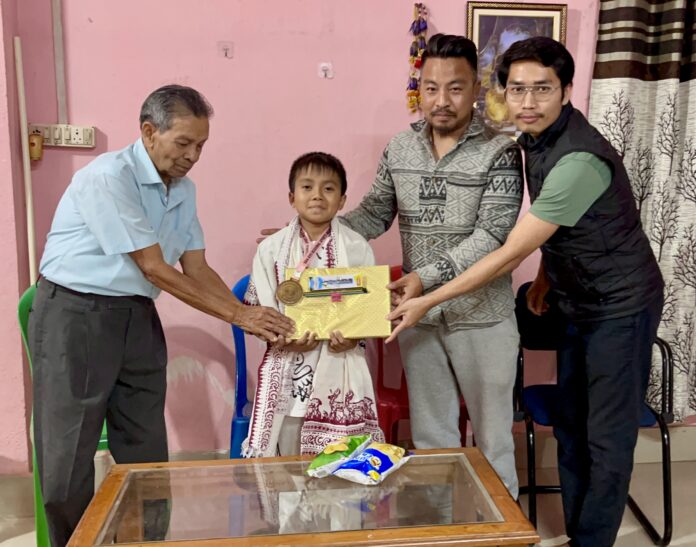Imphal: Nagamapal Youth Development Club (NYDC) today felicitated Jitesh Nongmaithem of Nagamapal Phougeisangbam Leikai in recognition of his remarkable achievement of winning the gold medal in the U-14 Boys Table Tennis event at the Kendriya Vidyalaya Sangathan, Tinsukia Region, 55th Regional Sports Meet 2026.